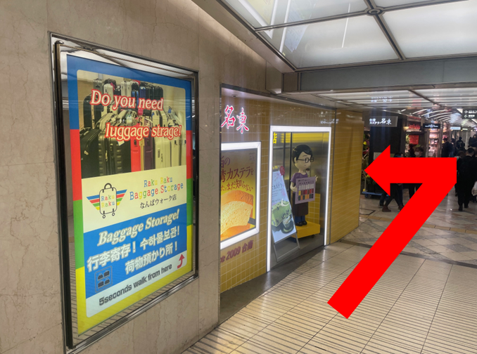 RakuraRaku Baggage Storage [Namba Walk store] is located at the entrance