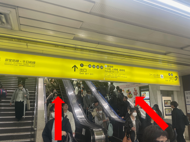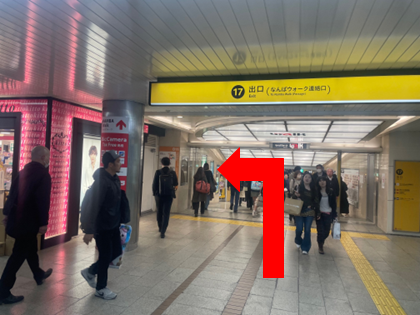 สถานี Osaka Metro Namba เชื่อมต่อโดยตรงกับ Namba Walk ดังนั้นจึงตั้งอยู่ด้านนอกประตูตรวจตั๋ว